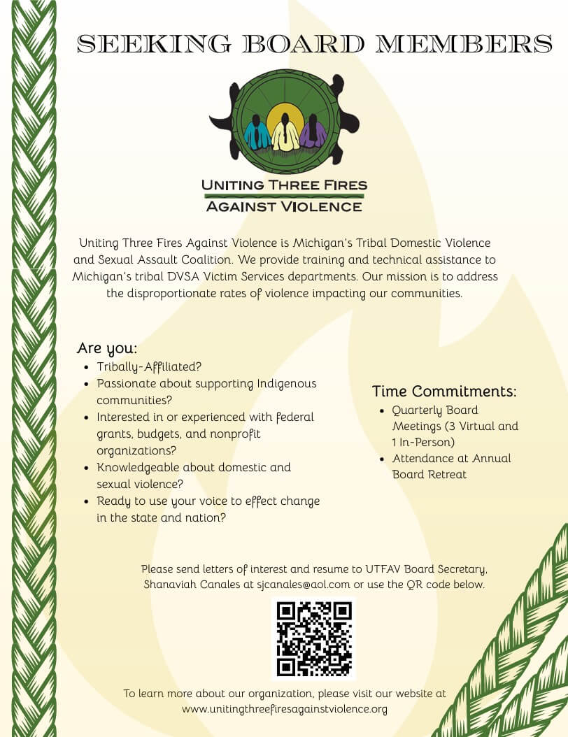 Our mission is to support all Michigan Tribes in promoting the social change necessary to address the disproportionate rates of violence impacting our communities. We envision empowered Native American survivors with access to essential and culturally appropriate services throughout the State of Michigan, Tribal communities that have access to the resources necessary to provide the identified services, and Tribal, State and Federal responses guided by culturally appropriate and trauma-informed practices.